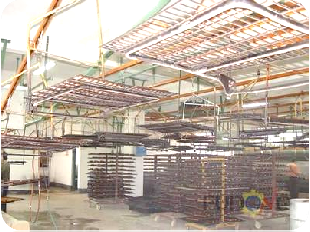 一般采用热源加温,温度控制在35℃-50℃,添加低速搅拌风扇,保持烤房空间内温度均匀,控制湿度在75%以下,每道油漆烘烤时间为1~2小时,面漆烘烤后静置常温24小时可以包装。(指开放式流程,若全封闭流程需增加待干时间)