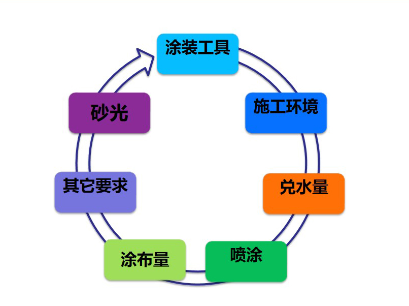 5、涂料混用:水性木器漆为水性产品,严禁混入油性物质,严禁与其他油漆混用。所使用之喷涂器具不可油性与水性交互使用,以避免产生油污.气泡及其它缺陷产生。