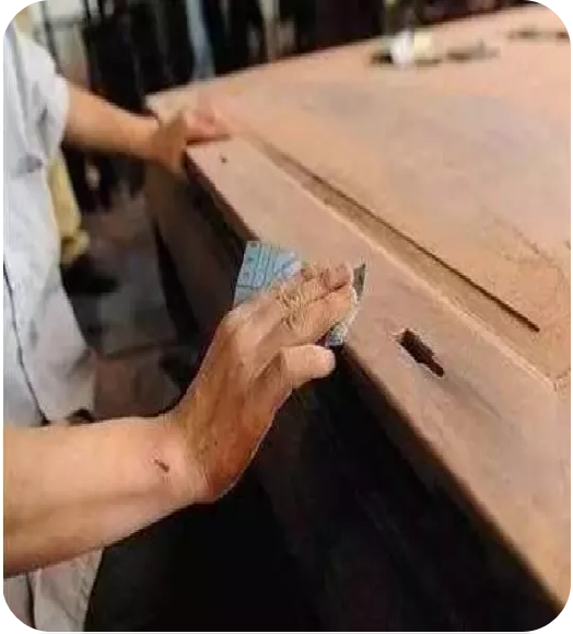 4). 手工砂光应顺木纹方向,可借助辅助工具;