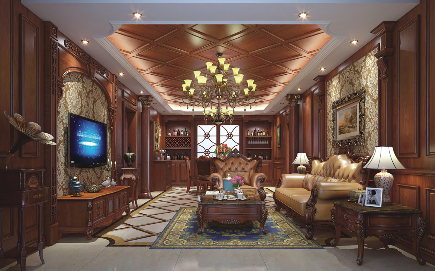欧式Z003背景墙 酒柜 吊顶